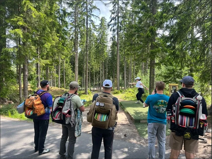 We want to make sure that the experience you have on the trip gives you the same feeling as if you’re playing with your friends at home. We cheer for each other and yell at the discs to miss trees when you need them to.
